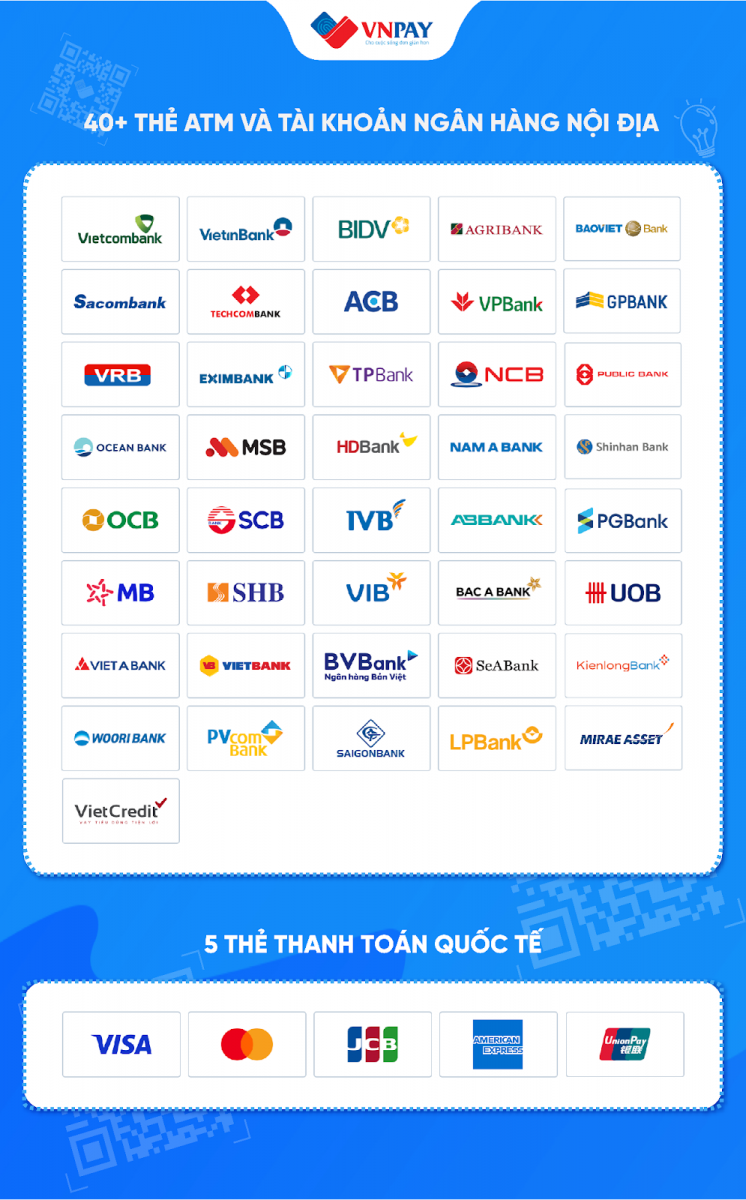 Cổng thanh toán VNPAY là giải pháp thanh toán do Công ty Cổ phần Giải pháp Thanh toán Việt Nam (VNPAY) phát triển. Khách hàng sử dụng thẻ, tài khoản ngân hàng, tính năng QR Pay/VNPAY-QR được tích hợp sẵn trên ứng dụng Mobile Banking của các ngân hàng hoặc Ví điện tử liên kết để thanh toán các giao dịch và nhập mã giảm giá (nếu có)